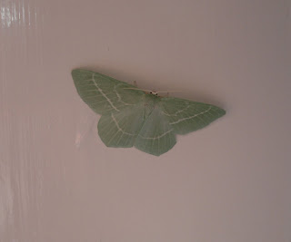 It was a lovely warm evening with the doors and windows open - this beautiful moth flew in. Google tells me it is a Light Emerald moth.