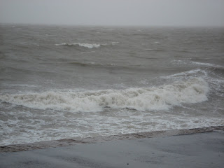 A wild day down by the sea. An empty seafront. No people, no cars, not even a seagull!! (Sorry about the quality of the photo - taken through the car window!)