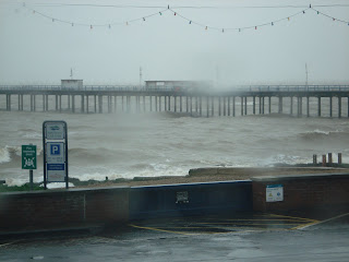 A wild day down by the sea. An empty seafront. No people, no cars, not even a seagull!! (Sorry about the quality of the photo - taken through the car window!)
