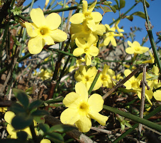 This week the Winter Jasmin in the garden has burst into flower - such beautiful little flowers.